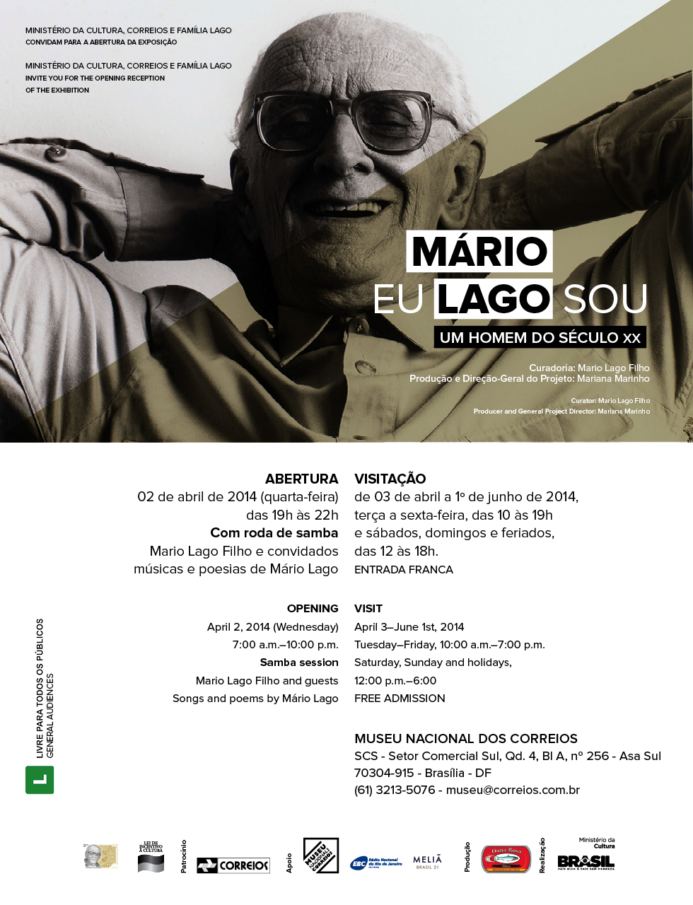 No próximo dia 2 de abril, o Museu Nacional dos Correios (Setor Comercial Sul, Asa Sul, em Brasília) recebe uma mega exposição sobre Mário Lago, com curadoria do filho, Mário Lago Filho.
