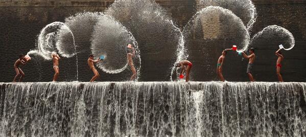 Foto que venceu o concurso LensCulture Exposure 2013, feita pelo malaio Chee Keong Lim, durante visita a Bali, na Indonésia: crianças brincando com a água de uma represa em uma pequena cidade da ilha.