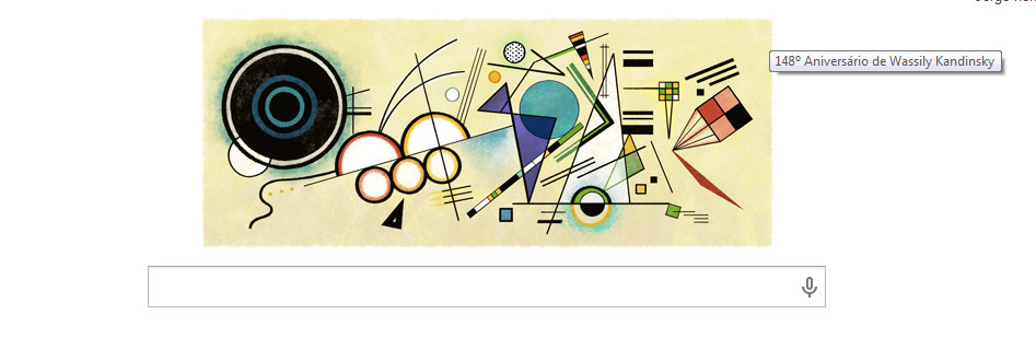 O doodle do Google de hoje é em homenagem ao pintor russo Василий Кандинский (Wassily Kandinsky), nascido em Moscou (1866) e morto em Neuilly-sur-Seine, França (1944), professor da escola Bauhaus e considerado o pai da arte abstrata.