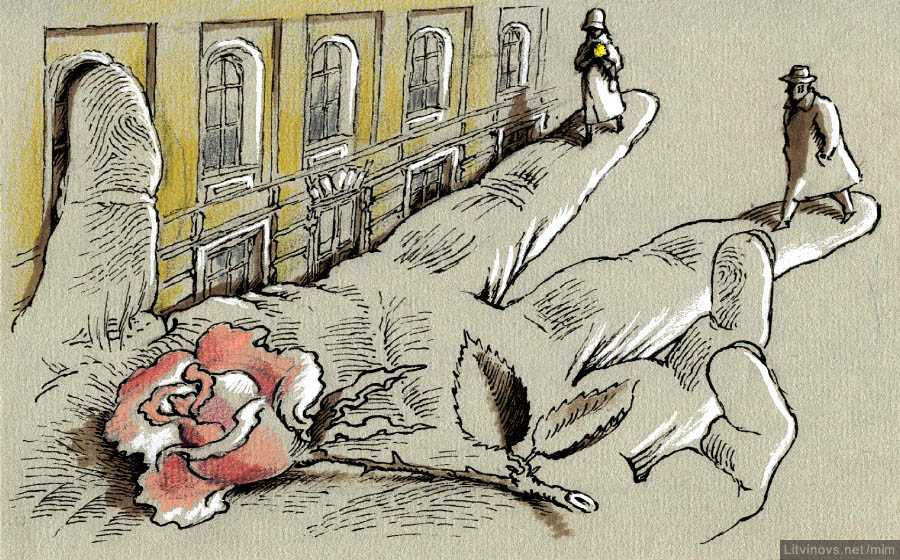 O amor saltou à nossa frente como um assassino em um beco surgindo do nada, e nos arrebatou simultaneamente. Como o relâmpago surge, como a faca finlandesa ataca! Ela, a propósito, insistiu que não era bem assim, que nós, evidentemente, nos amávamos há muito tempo, sem nos conhecermos, sem ter nos encontrado antes…